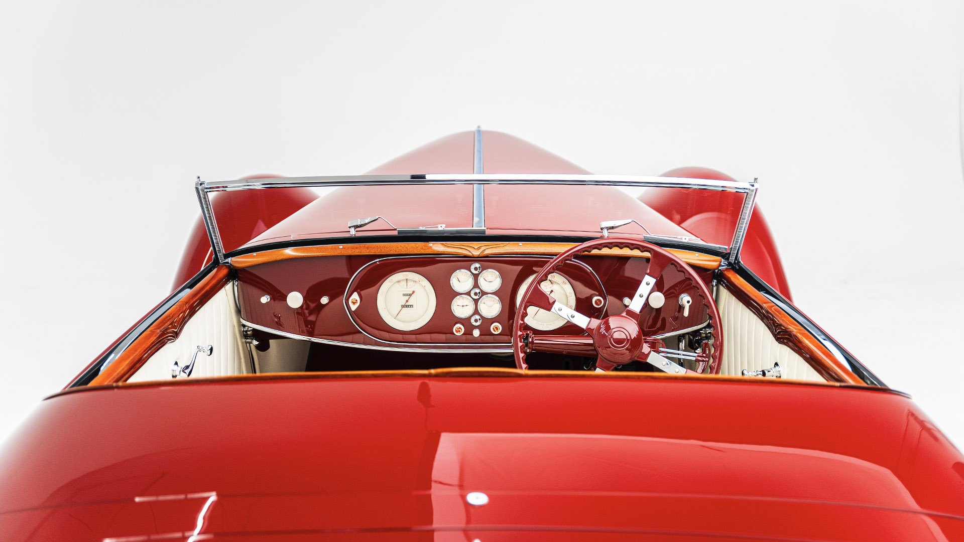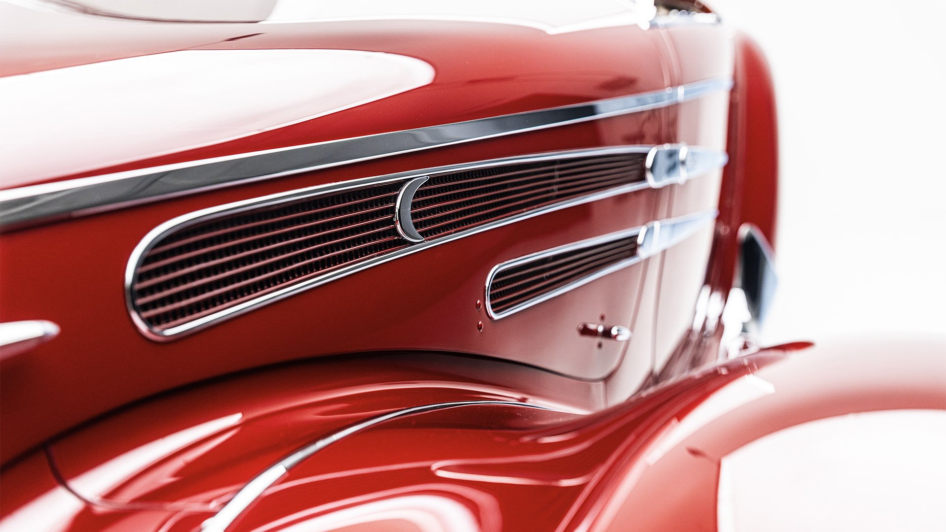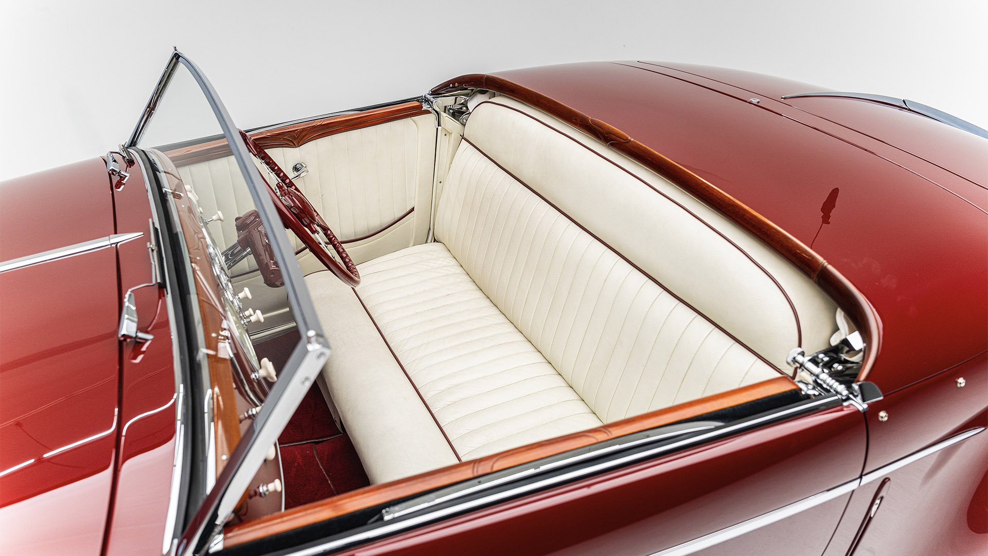 Delahaye built this roadgoing version of their successful racing Type 145 for the 1939 New York World’s Fair. Boasting the streamlined bodywork of Figoni et Falaschi, it was meant to feature a retooled 145 engine, but time constraints led it to be shipped without it. Following the outbreak of WWII, the car was fitted with a second-hand Cadillac powerplant and sold at a US auction. Peter and Merle Mullin discovered the car in a Fresno garage in 1984 and reunited it with its intended engine, making whole one of the finest examples of Art Deco automobile design.