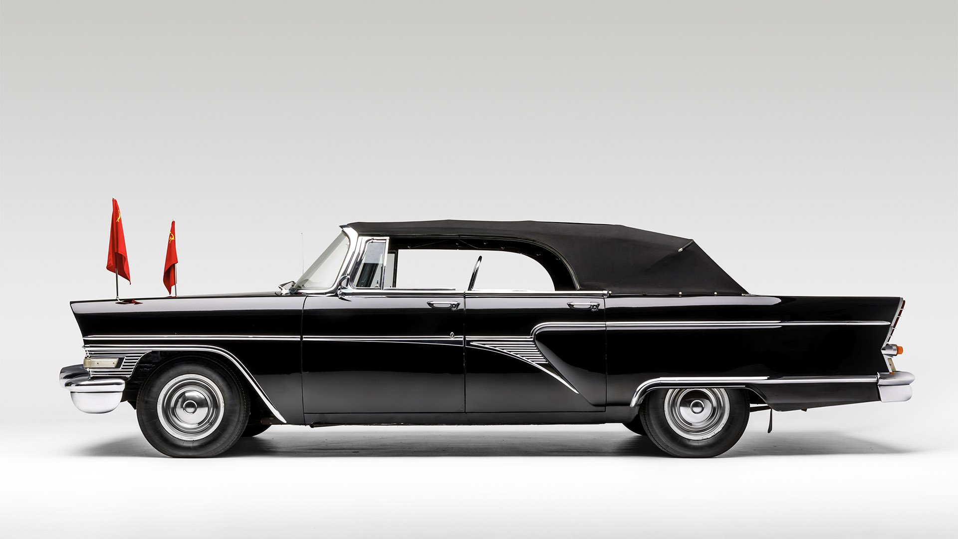 This imposing four-door convertible was the official parade car of Nikita Khrushchev during the final years of his regime. Premier of the USSR from 1958 through 1964, Khrushchev had two of these cars built to order, one of which he gave as to the Russian Cosmonaut Yuri Gagarin, the first human to travel in space. Upon Gagarin’s death in 1968, both cars were given to Hungarian President Janos Kadar and remained in Hungary until the collapse of communism in 1989, after which they were exported to the United States.