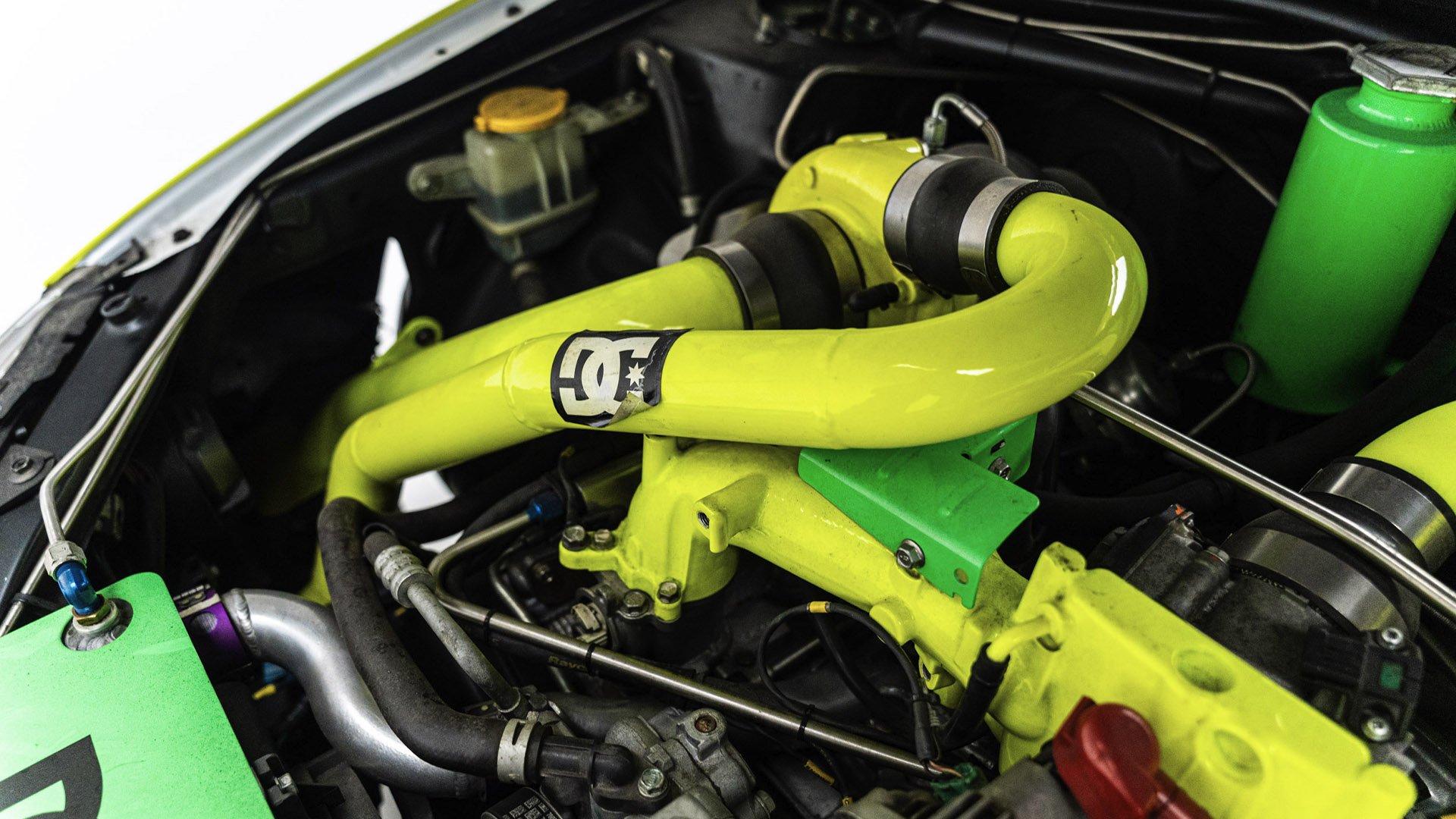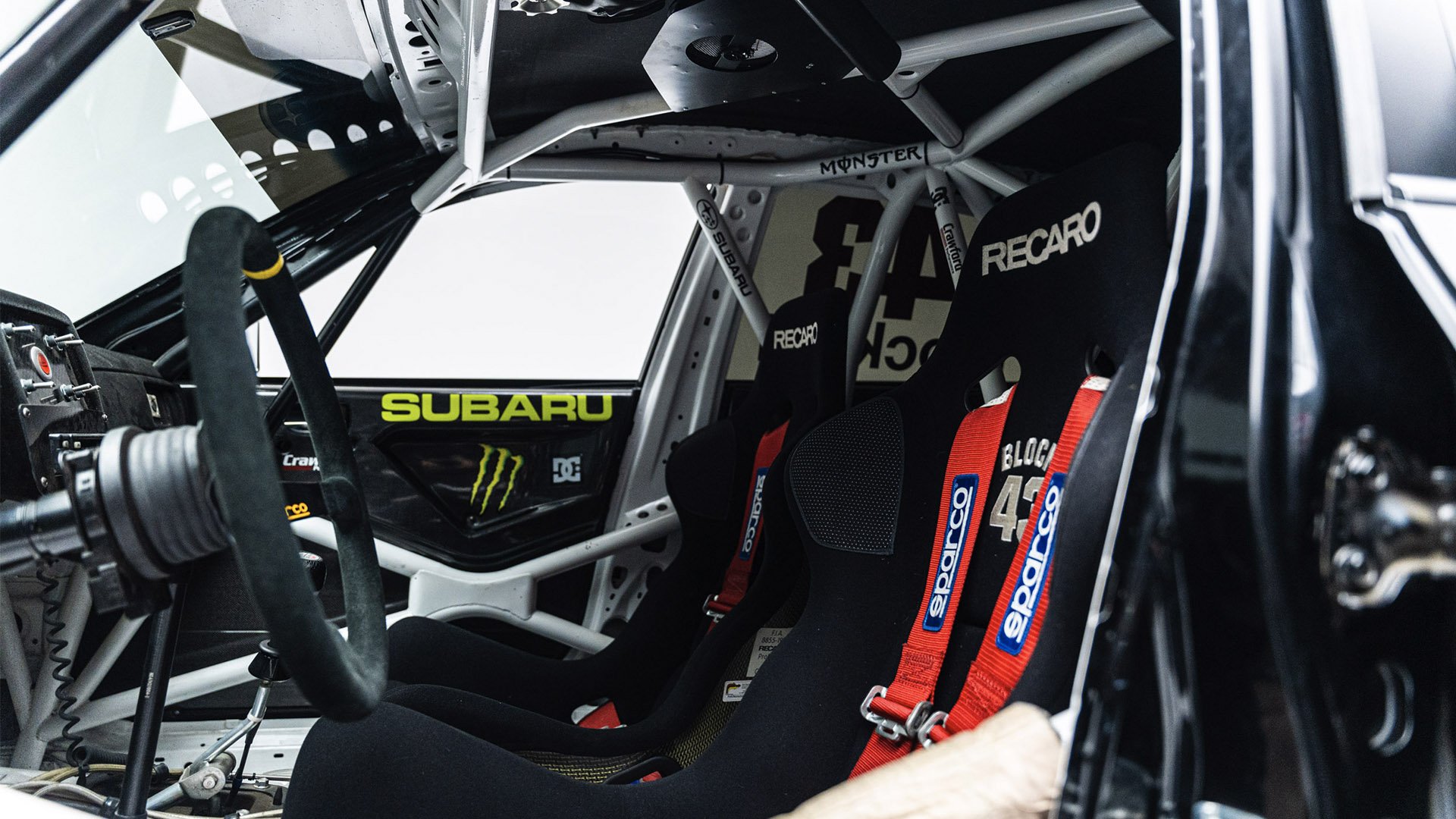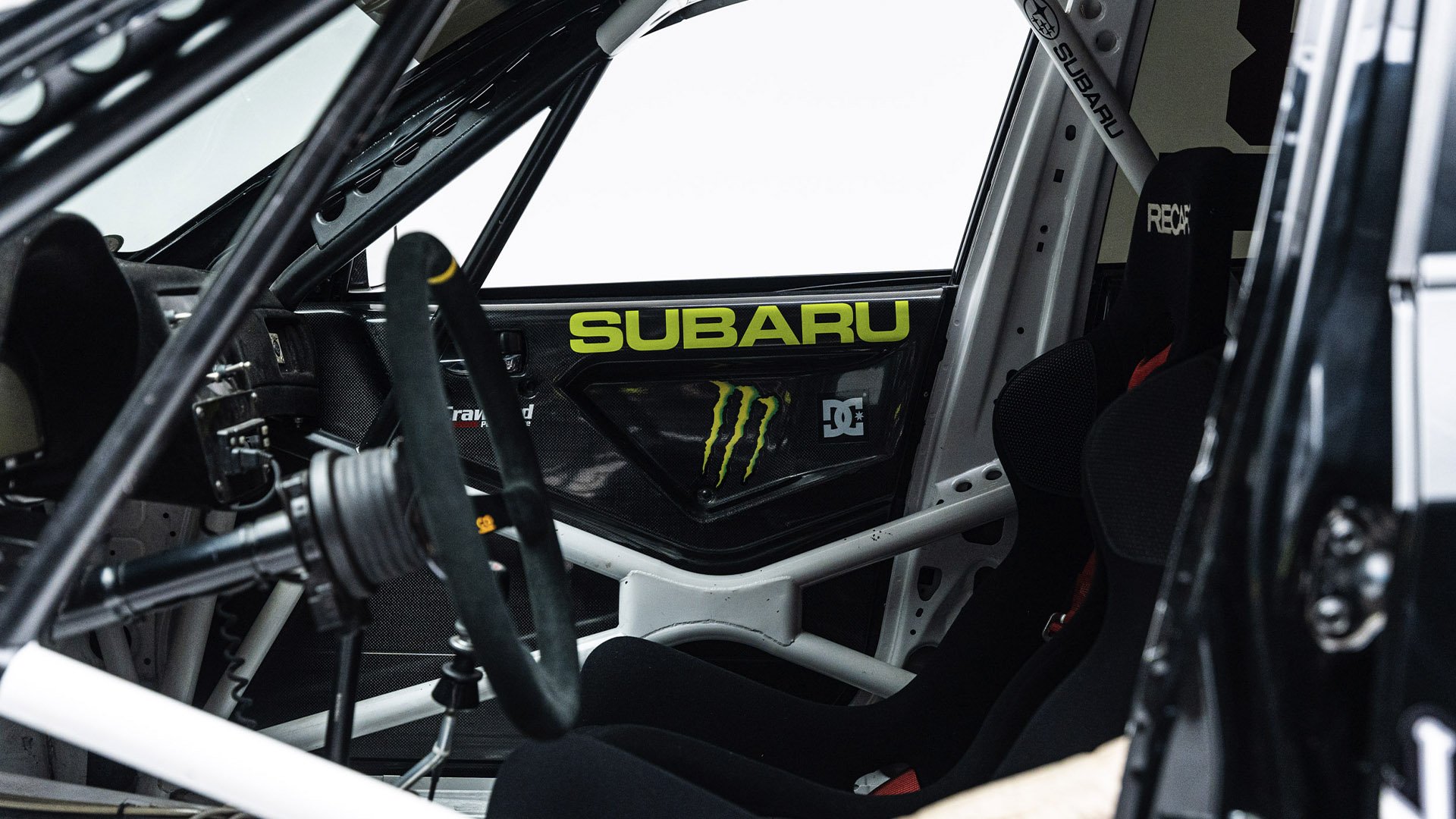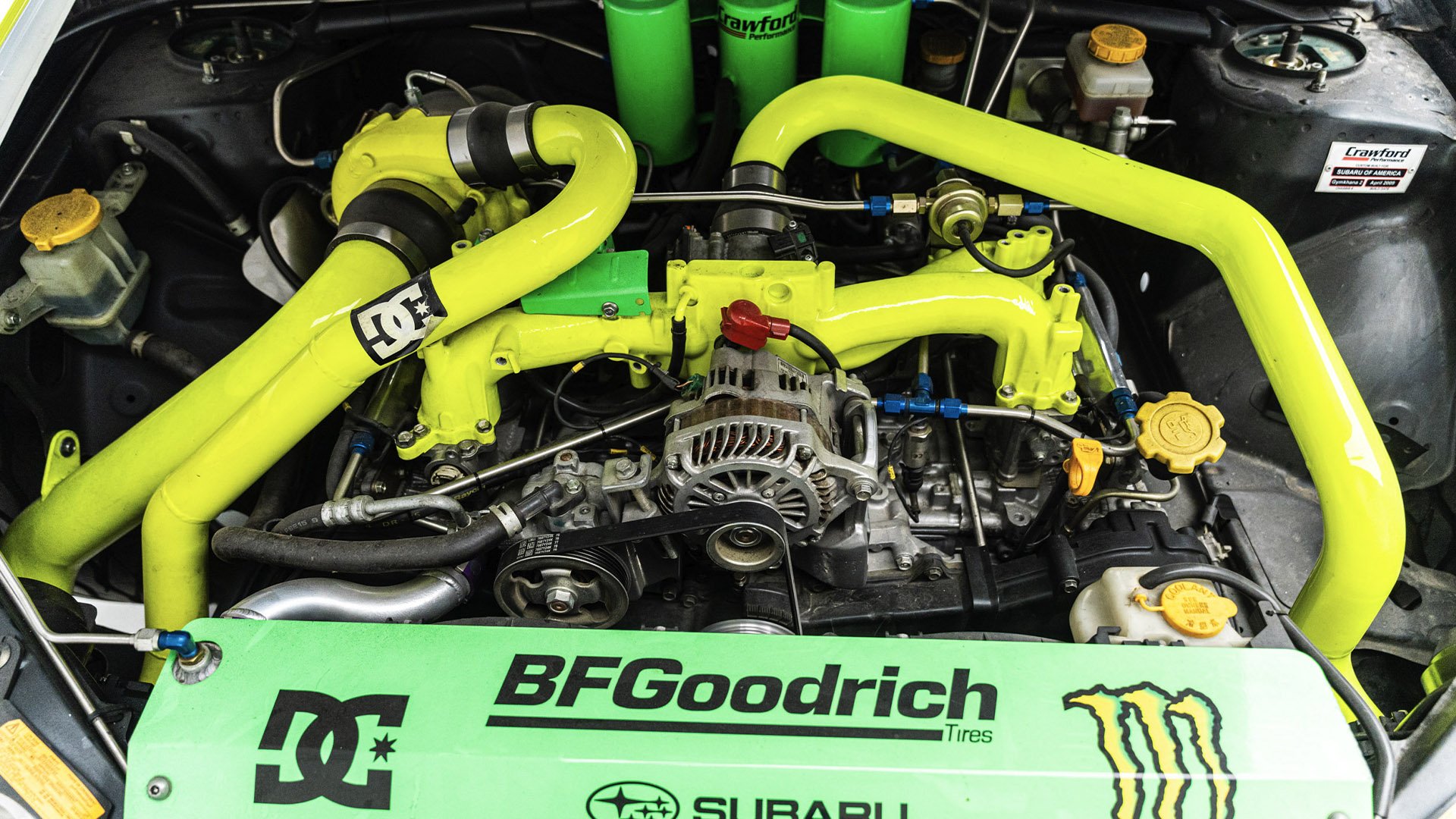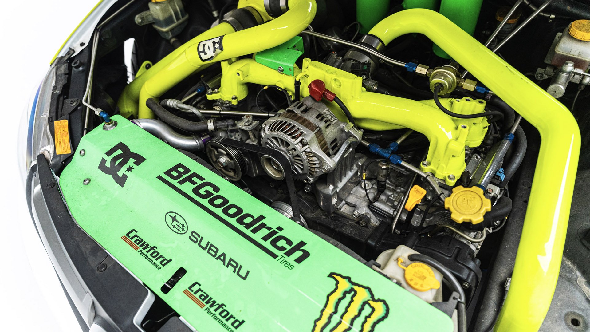 Gymkhana TWO, filmed in 2009, starred this modified Subaru WRX STI navigating obstacles in the Port of Long Beach. Though it also started as a road car, this vehicle was far more heavily modified than the one used in the first film and was the first car purpose-built for a Gymkhana video. Subtitled “The Infomercial,” Gymkhana TWO was the first of the films to promote a line of merchandise matching the vehicle's livery and Ken Block’s race suit.