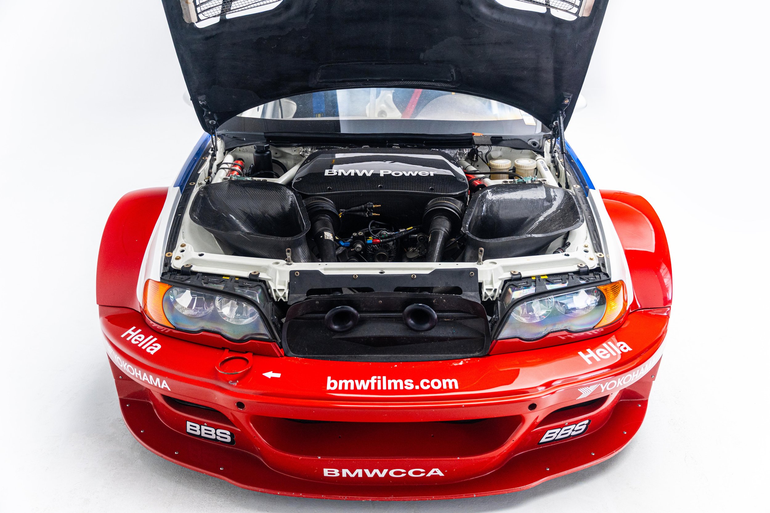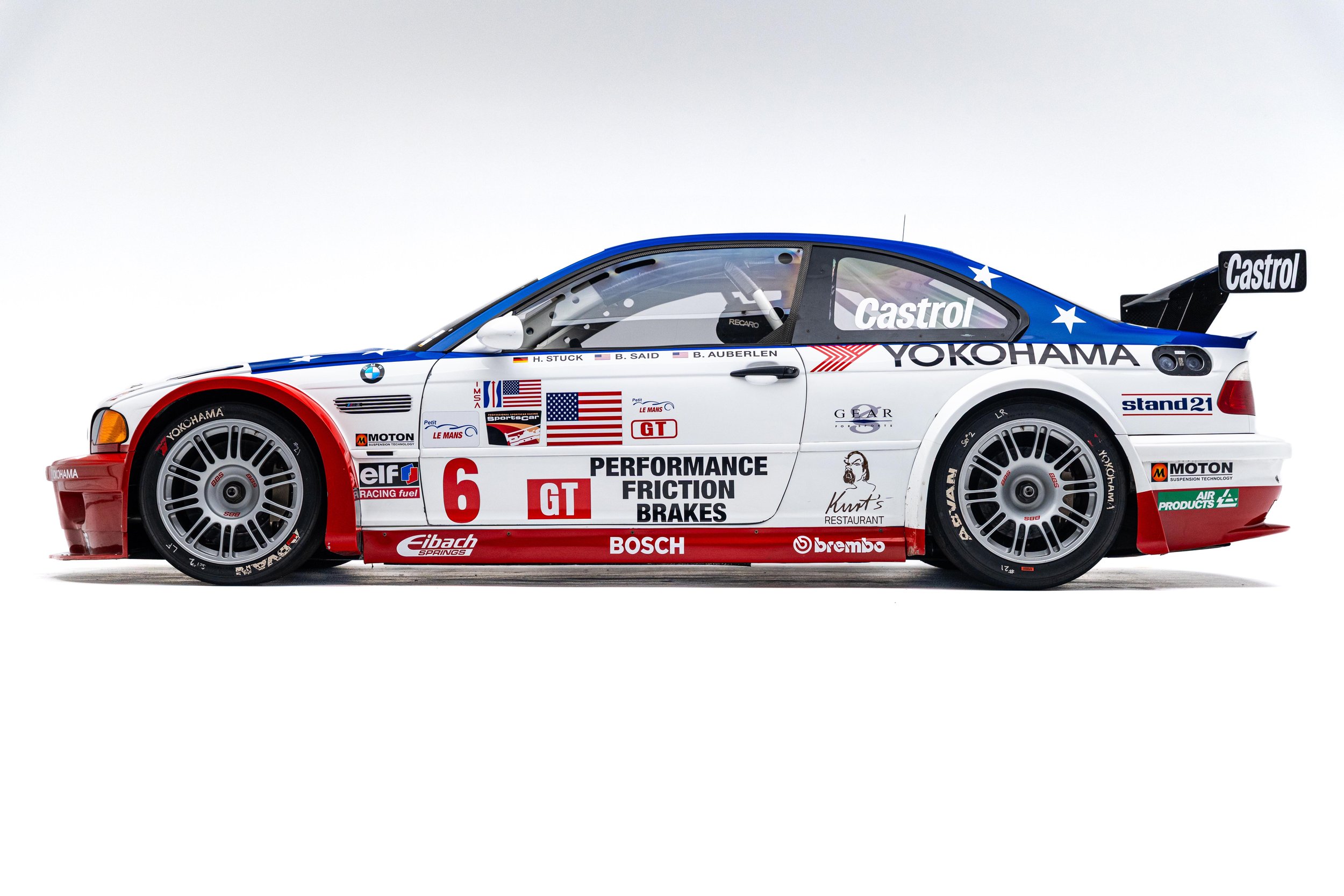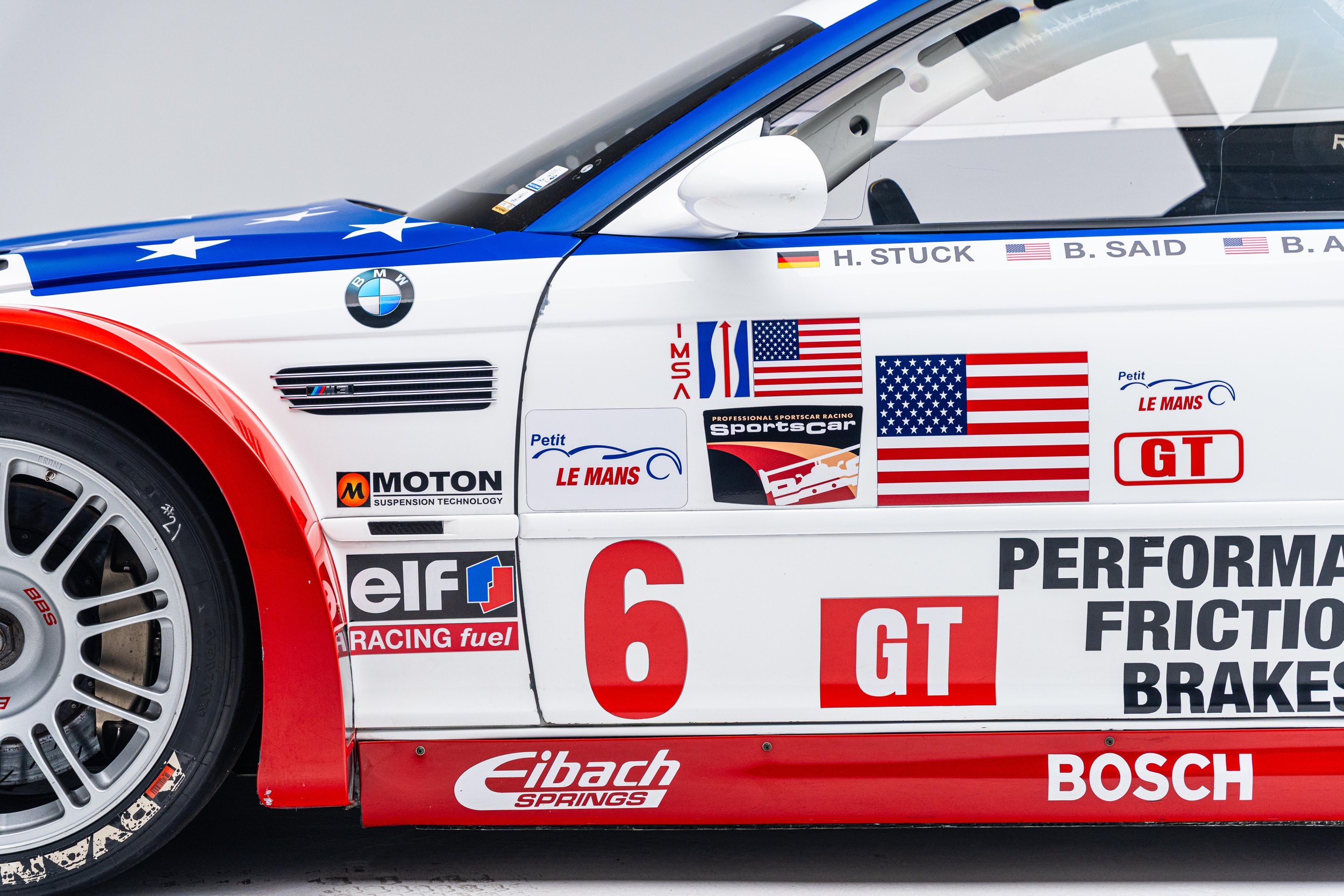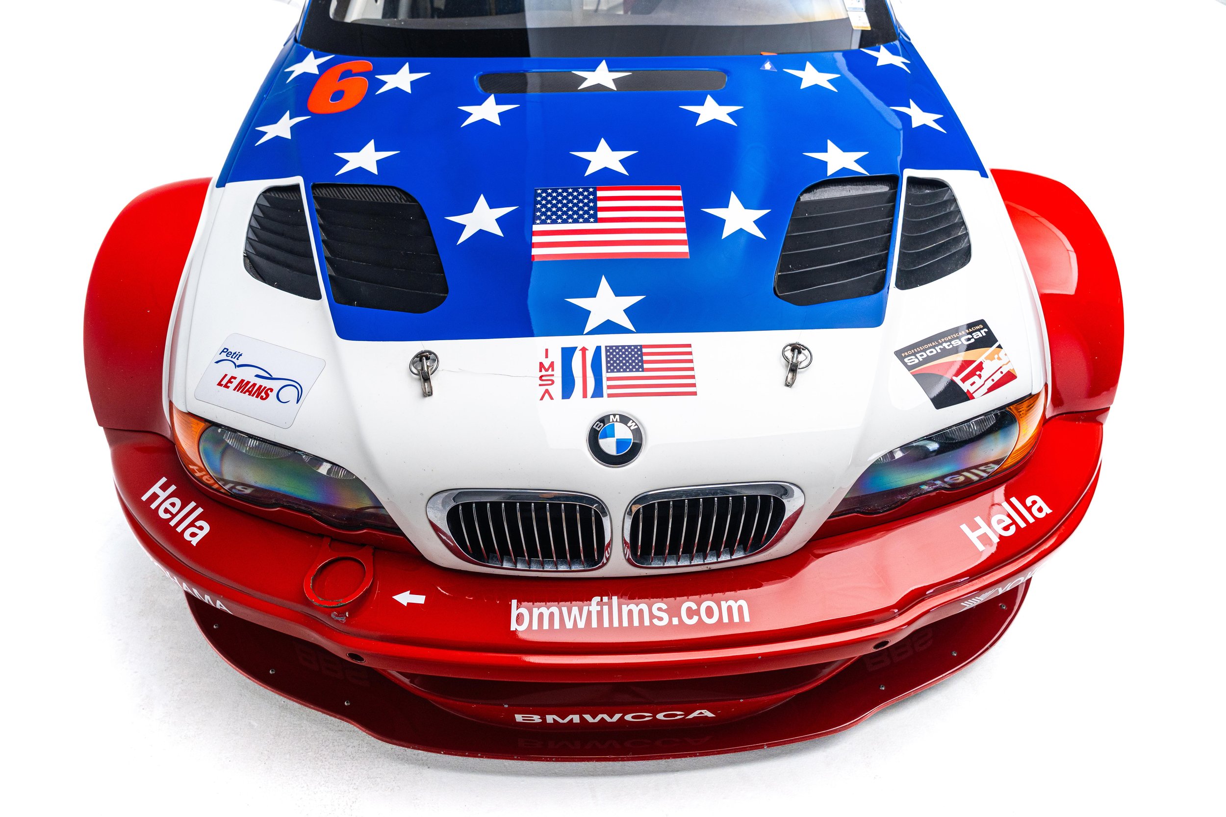 Based on the third-generation M3 (E46), the M3 GTR was developed for racing in the 2001 season of the American Le Mans Series (ALMS), which briefly allowed manufacturers to use race cars with purpose-built racing engines, provided a small number of equivalent roadgoing examples were built. These rules were changed for the following season but not before the M3 GTR won the Manufacturers’, Teams’, and Drivers’ Championships. The M3 GTR race car achieved cult status as the central vehicle in the story of the popular 2005 racing video game Need for Speed: Most Wanted. To celebrate the game’s 20th anniversary, BMW M wrapped one of its real M3 GTR race cars to resemble the one in the game. This example’s stars-and-stripes livery was designed to honor America in the immediate aftermath of the September 11th attacks.