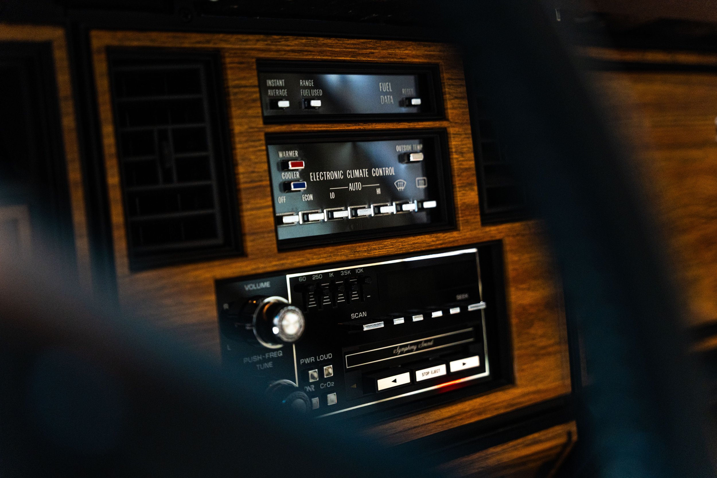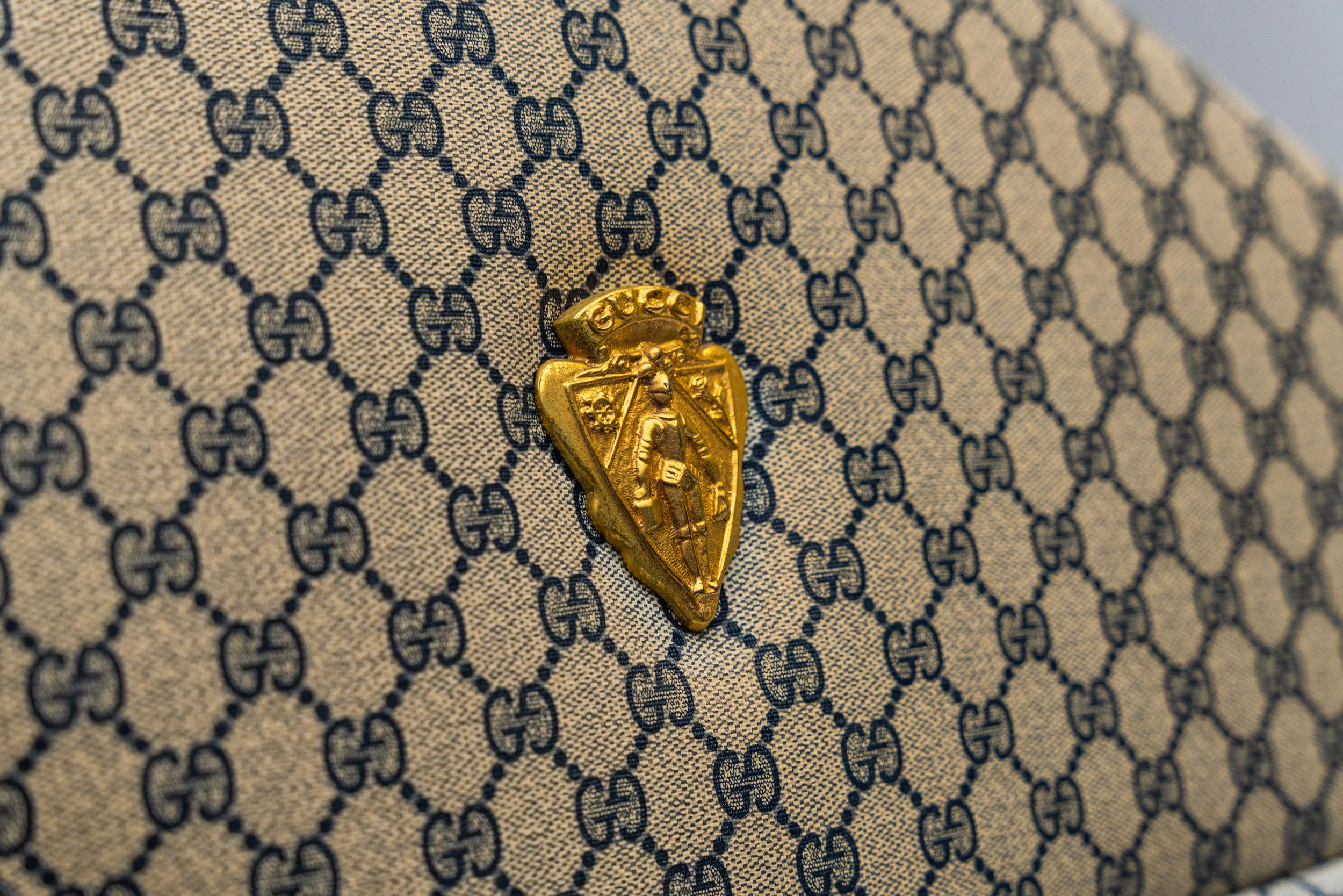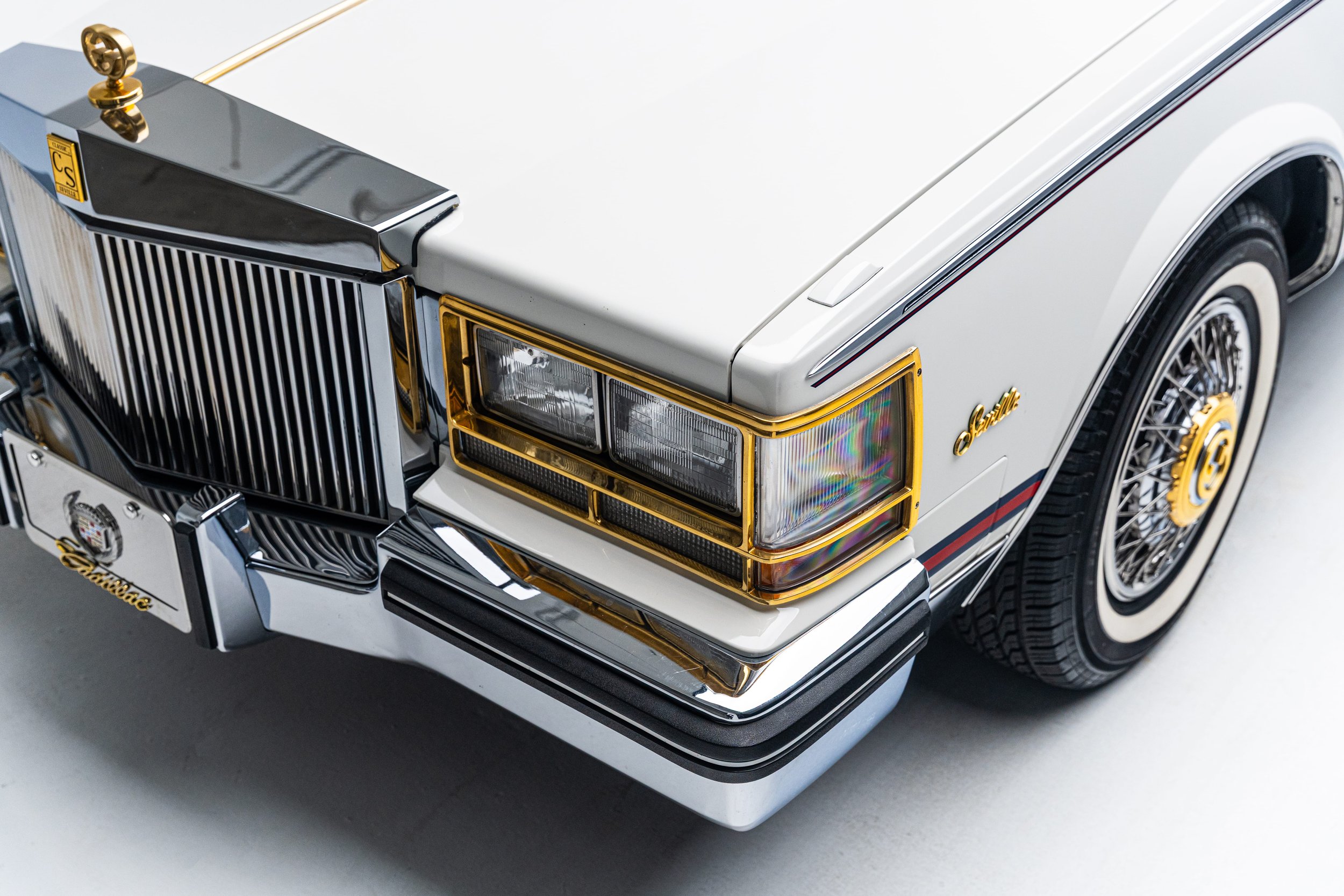 Manufactured at the peak of the "Malaise Era," the second-generation Cadillac Seville, introduced in 1980, was a mix of novel technology and classical design. While its modestly styled predecessor was meant to appeal to a younger clientele, the distinctive new Seville targeted an older market nostalgic for the luxury cars of their youth. Its prominent “bustle-back” rear end was inspired by prewar Rolls-Royces. After experiencing reliability issues and mixed reviews for the outdated look, the Seville was redesigned for 1986. Continuing a 1970s trend of fashion designer–automaker collaborations, in 1978 General Motors, Gucci, and Miami dealer Braman Cadillac partnered to create a special limited edition of the Seville with modifications designed by Aldo Gucci. These included a Gucci-patterned vinyl roof, monogrammed upholstery, custom wheels, and red and blue striping. A second-generation Seville by Gucci was even more exclusive and flamboyant than the first. It is unknown how many were built, but the car on display is believed to be one of fewer than ten survivors.