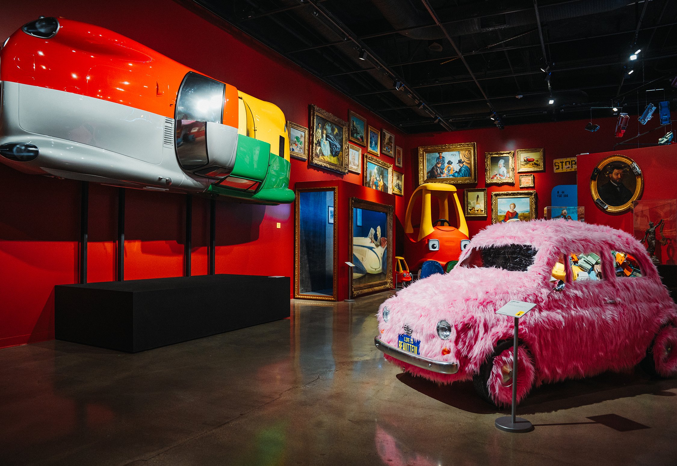 In his takeover of the Petersen Museum’s Armand Hammer Foundation Gallery, Mr Brainwash celebrates the automobile as a populist icon of American life and an inspirational machine that can spark imagination and joy. The immersive installation Cars Are Beautiful is a feast for the eyes that features paintings and sculptures in a whimsical cacophony resulting in a unique and engaging experience.