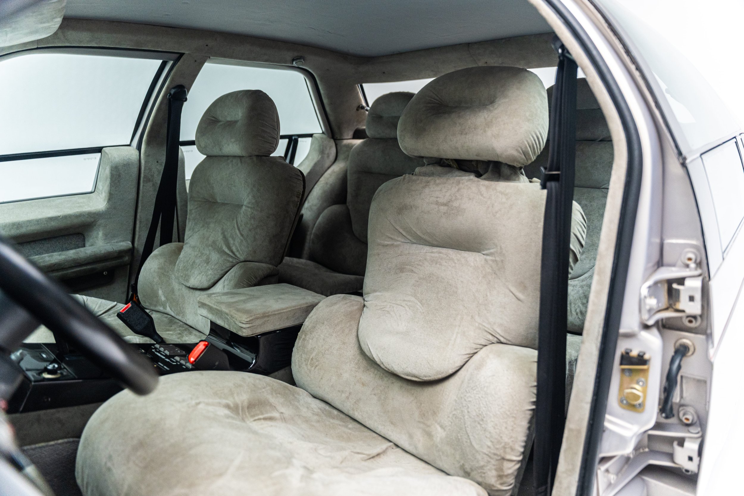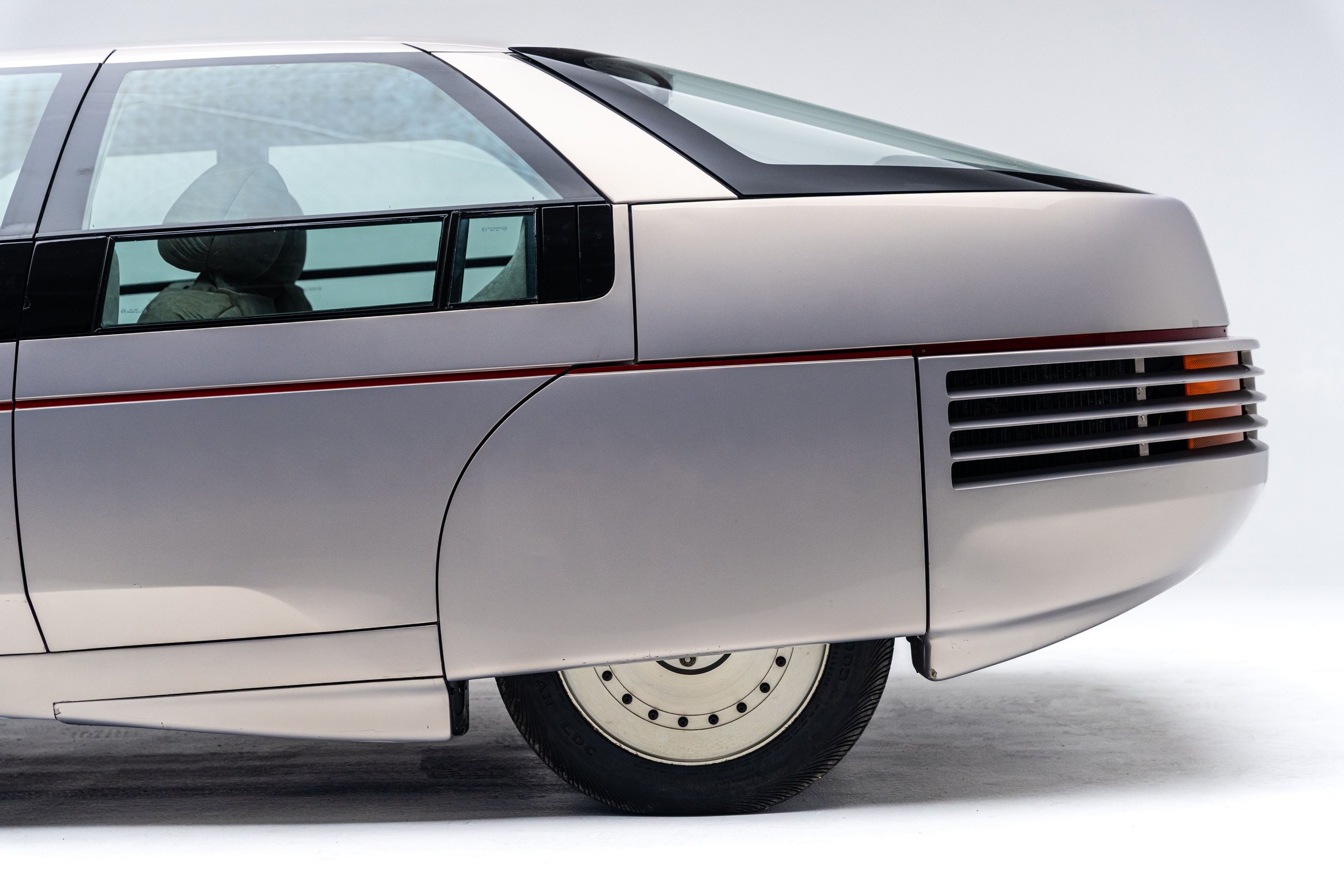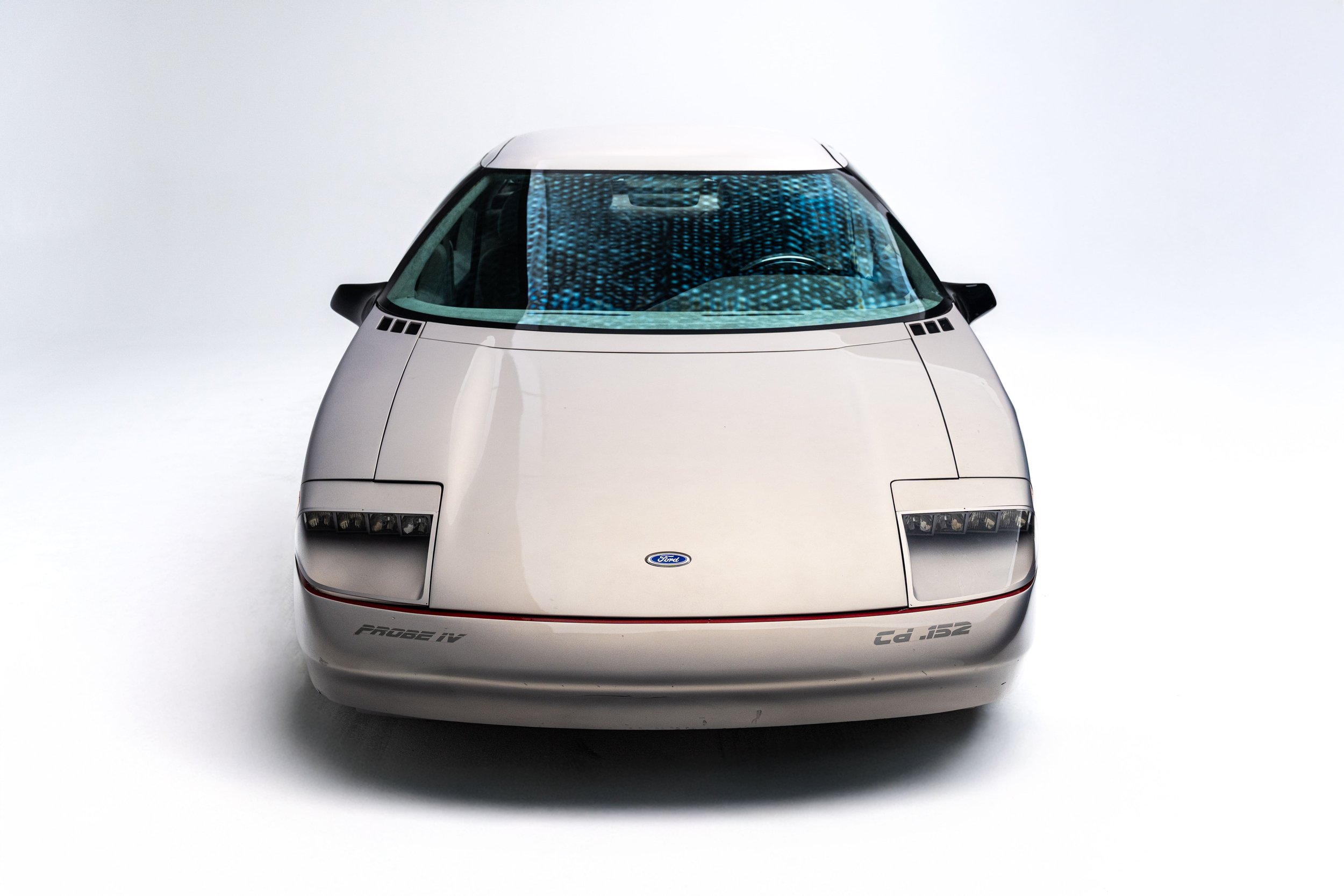 The Ford Probe IV embodied some of the most extreme aerodynamic advancements of the 1980s. Designed for maximum fuel efficiency, it was the fourth in a collection of “Probe” concepts commissioned in the early 1970s to explore passenger car designs that could comply with the Corporate Average Fuel Economy standards enacted by President Gerald Ford’s administration. The Probe IV achieved its aerodynamic efficiency with features like wheel shrouds, covered headlights, concealed windshield wipers, and a streamlined nose with no cooling apertures. The radiator and air conditioning condenser are housed in the rear of the car, with air intake vents behind the rear wheel well openings. It also has a front air dam that automatically lowers while driving to control air flow under the vehicle. These and other elements combined to give the functional concept an incredibly low drag coefficient of 0.15, which Ford advertised was roughly the same as an F-16 fighter jet.