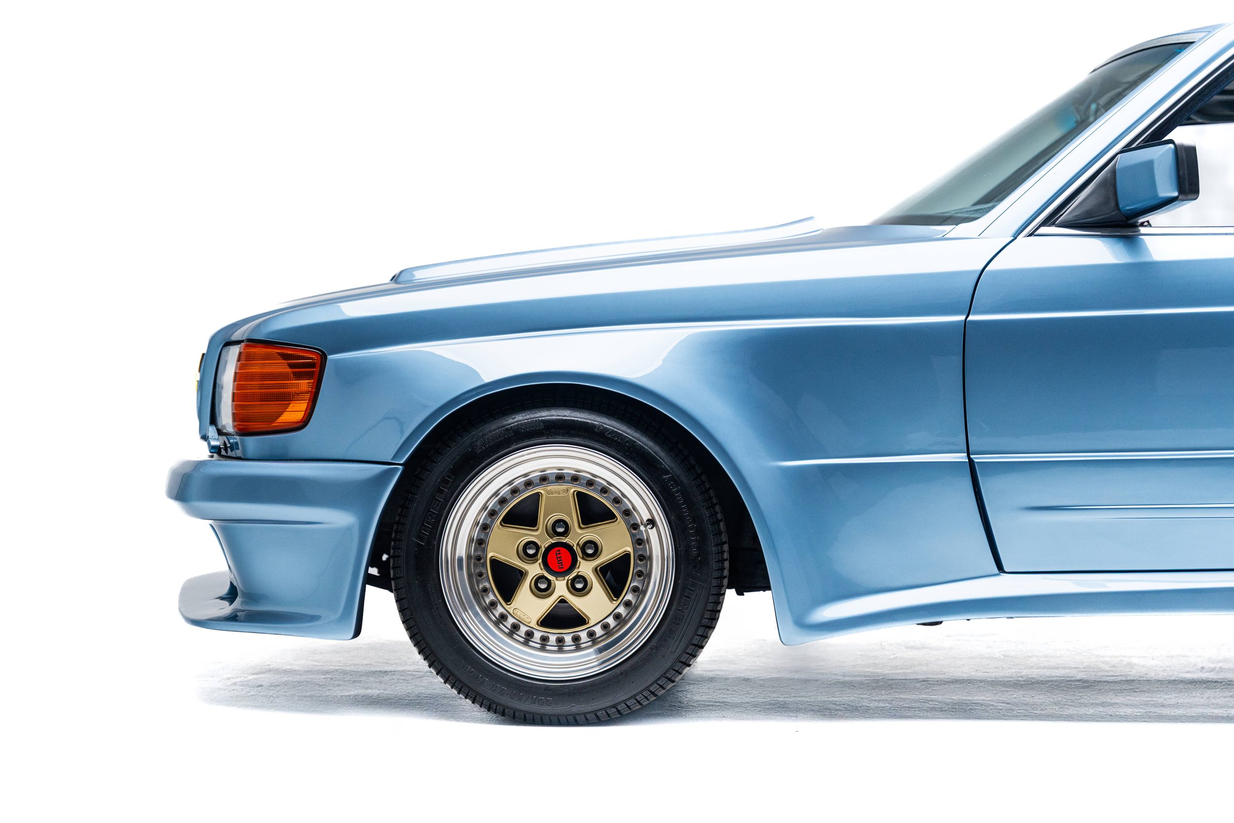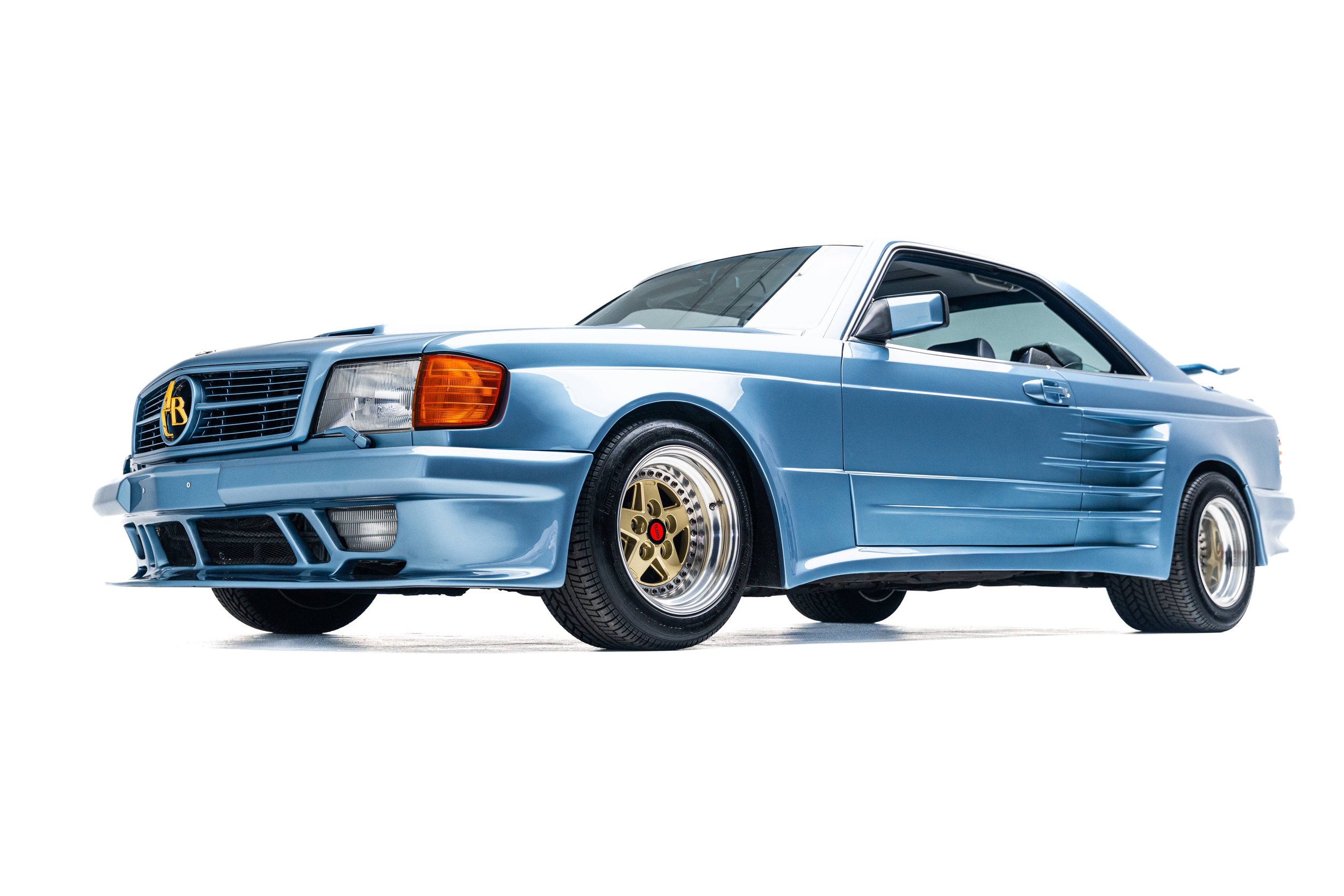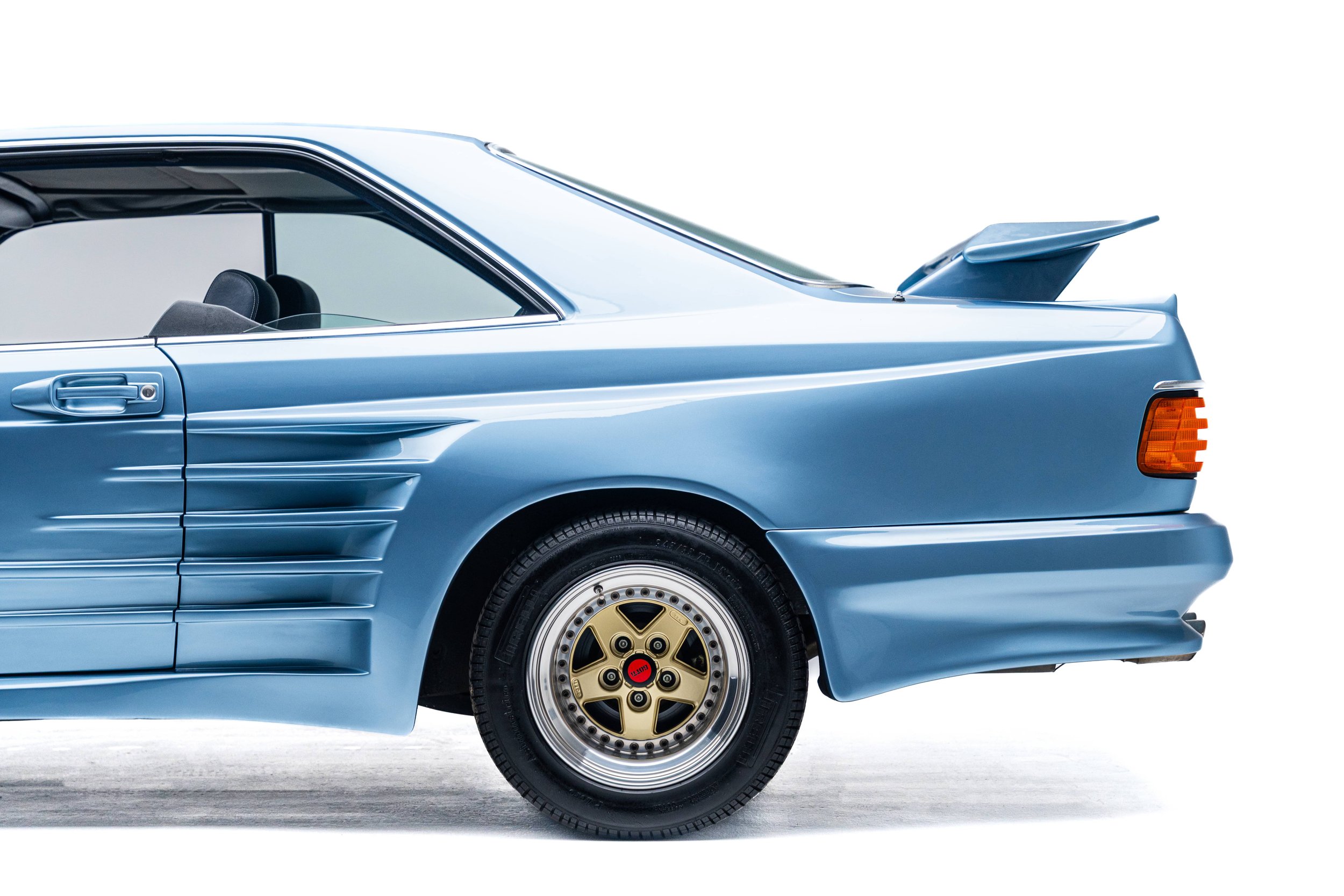 The SEC was the coupe version of the Mercedes-Benz S-class, the company's flagship and most luxurious model. Offered from 1985 to 1991, the 560SEC was the most expensive car in the Mercedes lineup. It featured a unique design with no side pillars, giving it an uninterrupted profile with the windows down and creating an airy-feeling interior. This, combined with a powerful V-8 engine, made for a sporty driving experience in a top-of-the-line luxury car. This blend of looks and performance made S-Class cars, especially the coupes, popular among aftermarket tuning companies such as AMG, Koenig-Specials, and Carat by Duchatelet. Flaunting one's wealth by transforming an understated grand tourer into an outrageous expression of opulence epitomized the 1980s "greed is good" ethos. This 560SEC was modified by German tuning company ABC Exclusive with custom paint, emblems, aftermarket wheels, a hood scoop, rear spoiler, and an exaggerated widebody kit with strakes reminiscent of the Ferrari Testarossa.