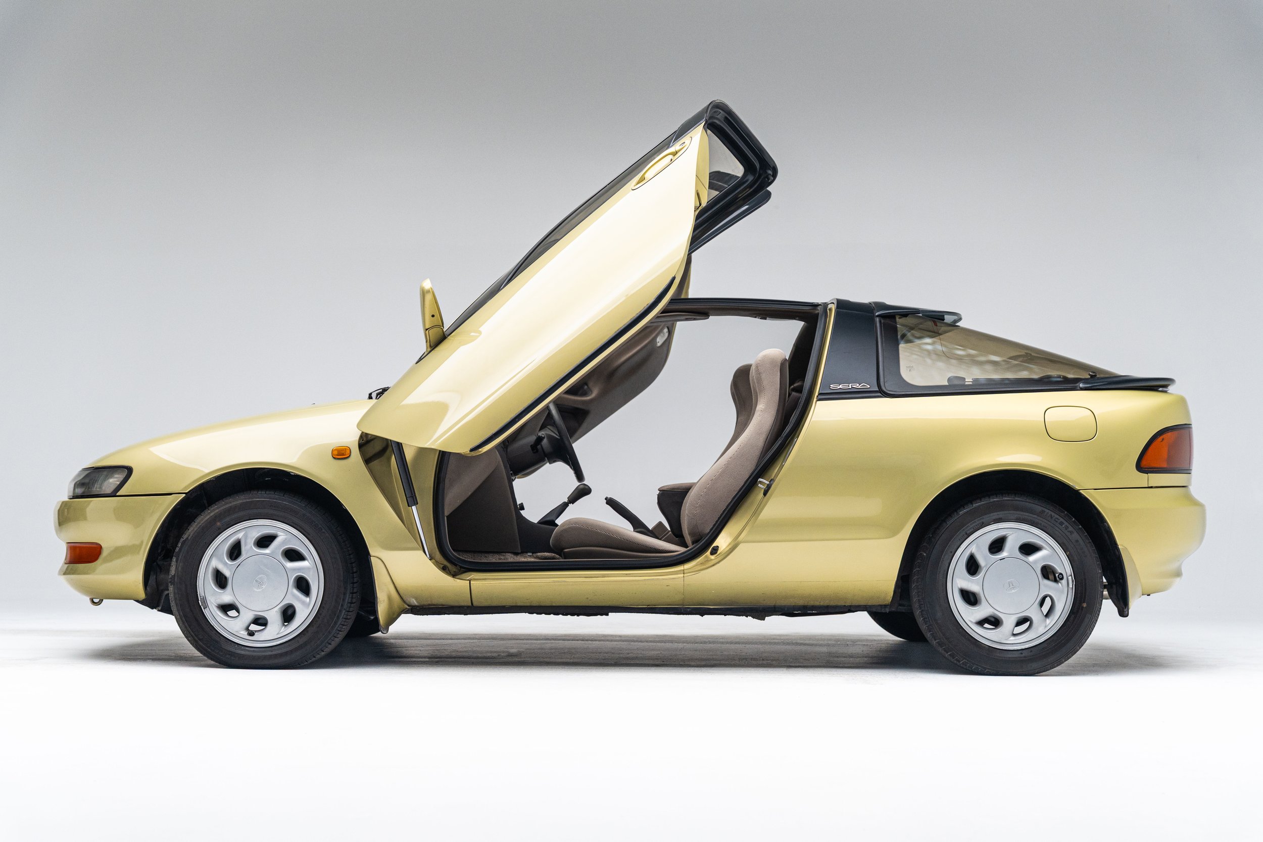 From 1986 to 1991, the Japanese economy experienced a “bubble” period, during which prices for real estate and stocks were inflated, and credit was easily available. Automakers used the influx of capital to experiment with new manufacturing techniques, technology, and radical designs on low-production models. The Sera, designed by American Stewart Reed but sold only in Japan, featured rounded, jellybean styling that was typical of small cars of the era. Highly atypical were its dramatic butterfly doors, designed to require less space to open than conventional doors and to give what was essentially an economy car something unique and futuristic. The Sera was built using a novel, comparatively simple technique for stamping body panels that was especially suited for short production runs. Manufacturers intended to utilize this process in building a new wave of small-volume vehicles, but when the economic bubble burst, Japanese auto companies were forced to scale back those plans, ending a brief but distinct era of unusual production cars.