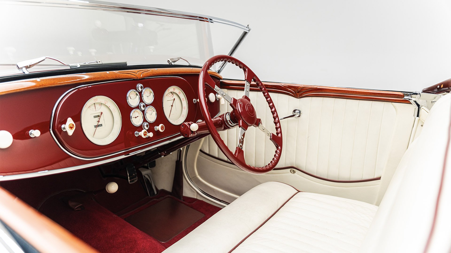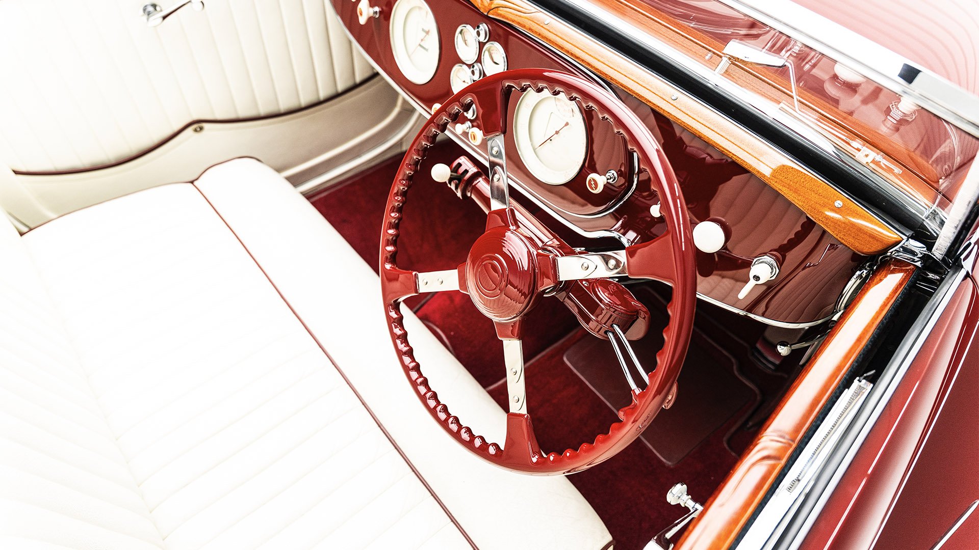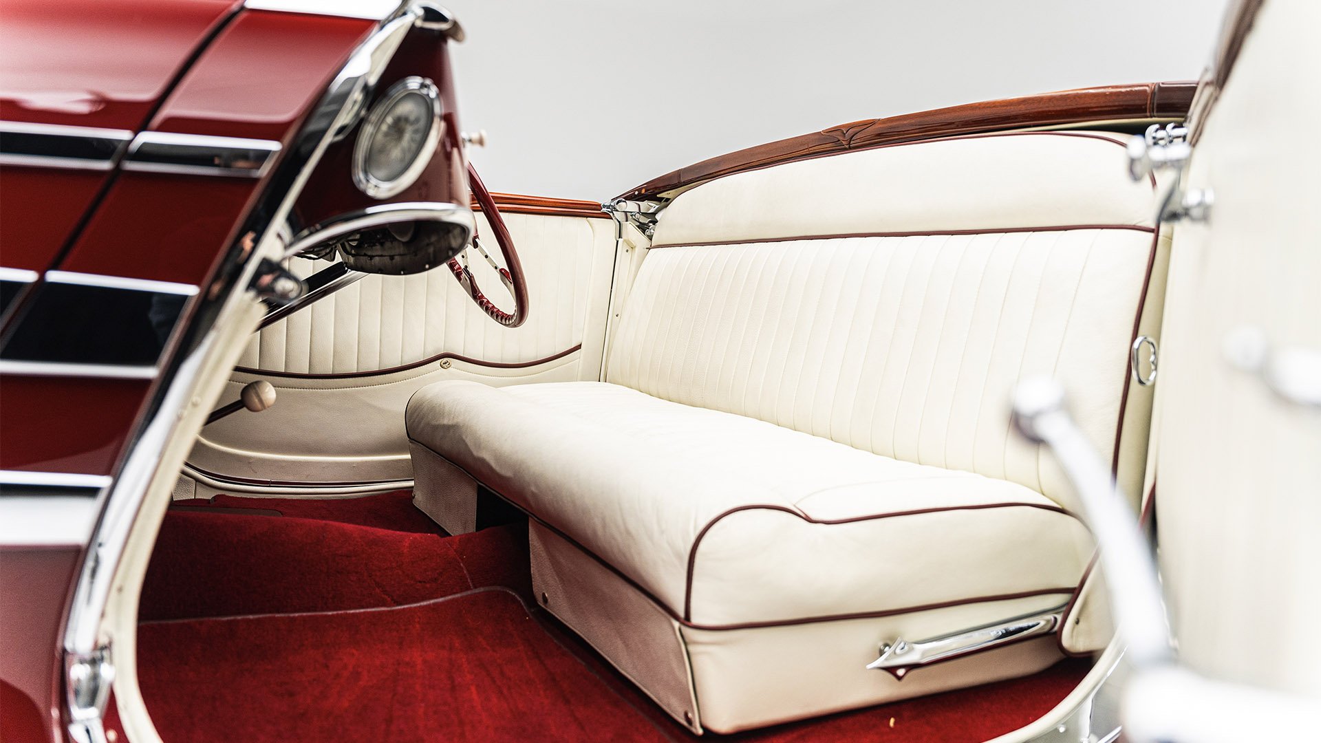 Delahaye built this roadgoing version of their successful racing Type 145 for the 1939 New York World’s Fair. Boasting the streamlined bodywork of Figoni et Falaschi, it was meant to feature a retooled 145 engine, but time constraints led it to be shipped without it. Following the outbreak of WWII, the car was fitted with a second-hand Cadillac powerplant and sold at a US auction. Peter and Merle Mullin discovered the car in a Fresno garage in 1984 and reunited it with its intended engine, making whole one of the finest examples of Art Deco automobile design.