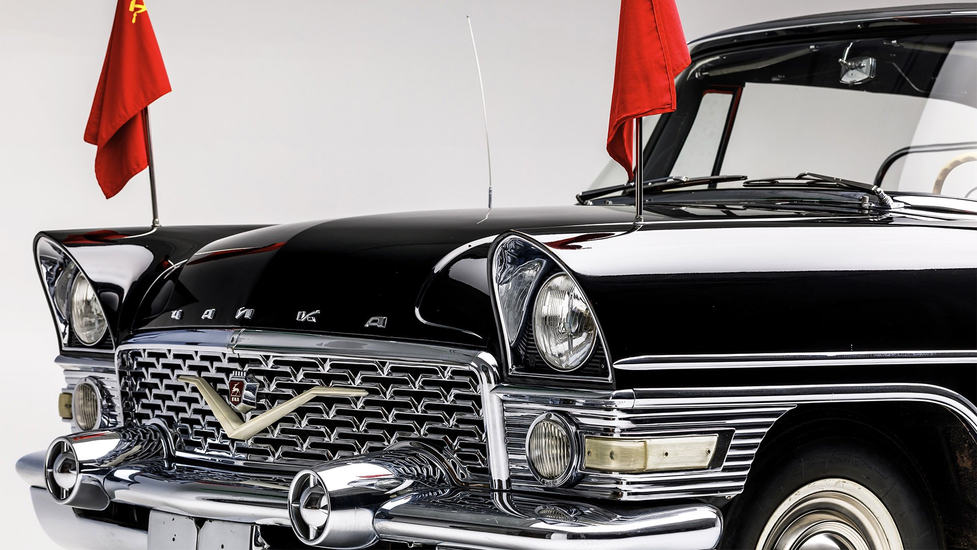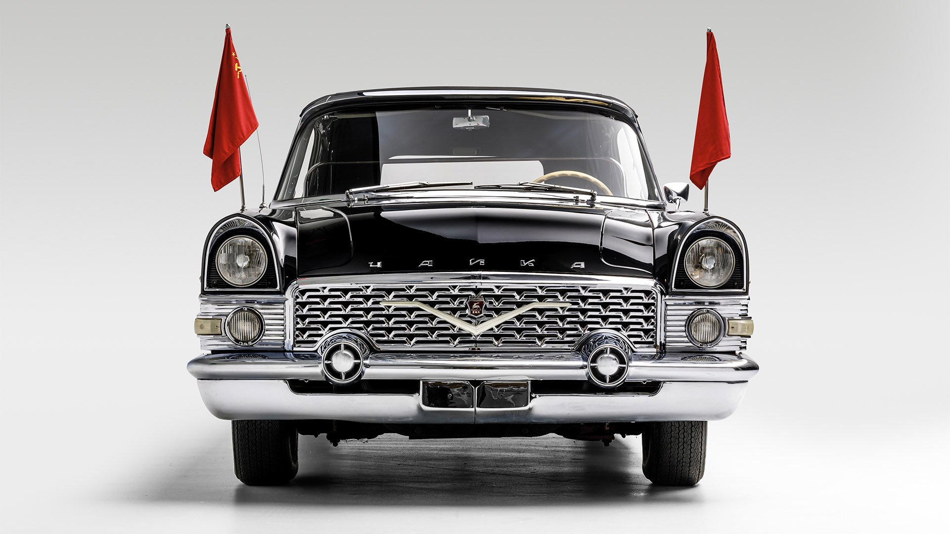 Its name meaning “gull,” the Chaika was built in the former Soviet Union by GAZ, a firm originally established to manufacture Ford vehicles beginning in 1932. Though Chaikas bear a strong resemblance to the 1955 and 1956 Packard and were powered by large, American-style V-8 engines, they were produced with no involvement from any American firm. But it was evident that the styling of the American luxury brand substantially influenced the formative years of Chaika development, and when the first prototypes of the new class of Soviet “luxury” vehicle debuted in 1957, there was no mistaking the source of its inspiration. Officially designated the GAZ-13, the cars were evaluated on the challenging roads of Ukraine and Russia, including in the Caucasus Mountains, accumulating a total of more than 21,000 test miles—a small number by American standards, but satisfactory for a vehicle built by an aspiring luxury car manufacturer. The first production GAZ-13 rolled off the assembly line at the Gorky plant on January 19, 1959.