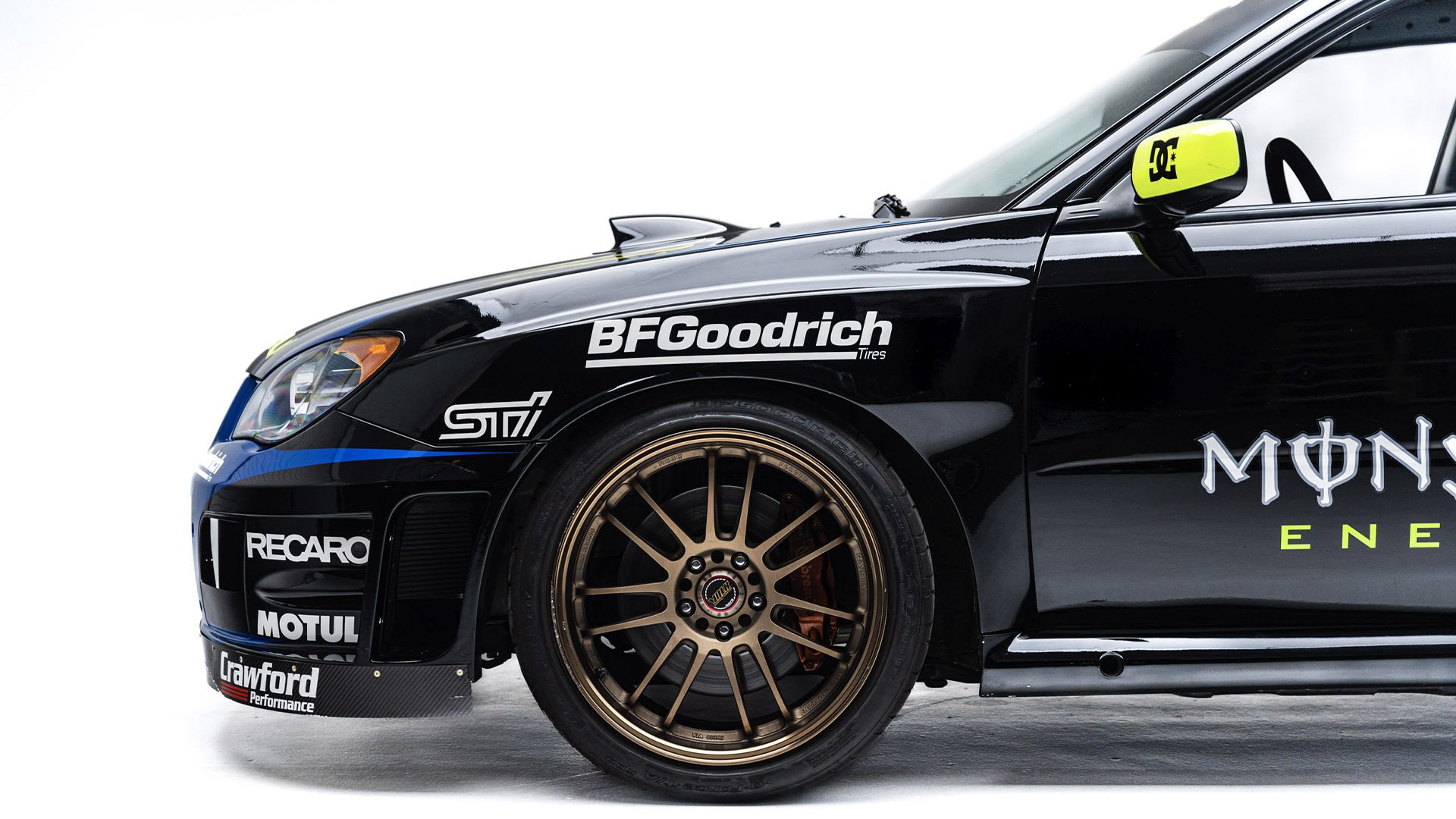 Ken Block called on his experience as co-founder and chief brand officer of DC Shoes, a skateboarding apparel brand, to promote his rally career with Gymkhana: PRACTICE (or Gymkhana ONE). Inspired by early 2000s skateboarding videos, the film featured Block executing high-speed precision driving maneuvers in this 2005 Subaru (updated to look like a 2006 model), modified for the now-defunct Gymkhana USA motorsports series. The film became one of the most popular online videos of 2008 and spawned 16 sequels and spinoffs.