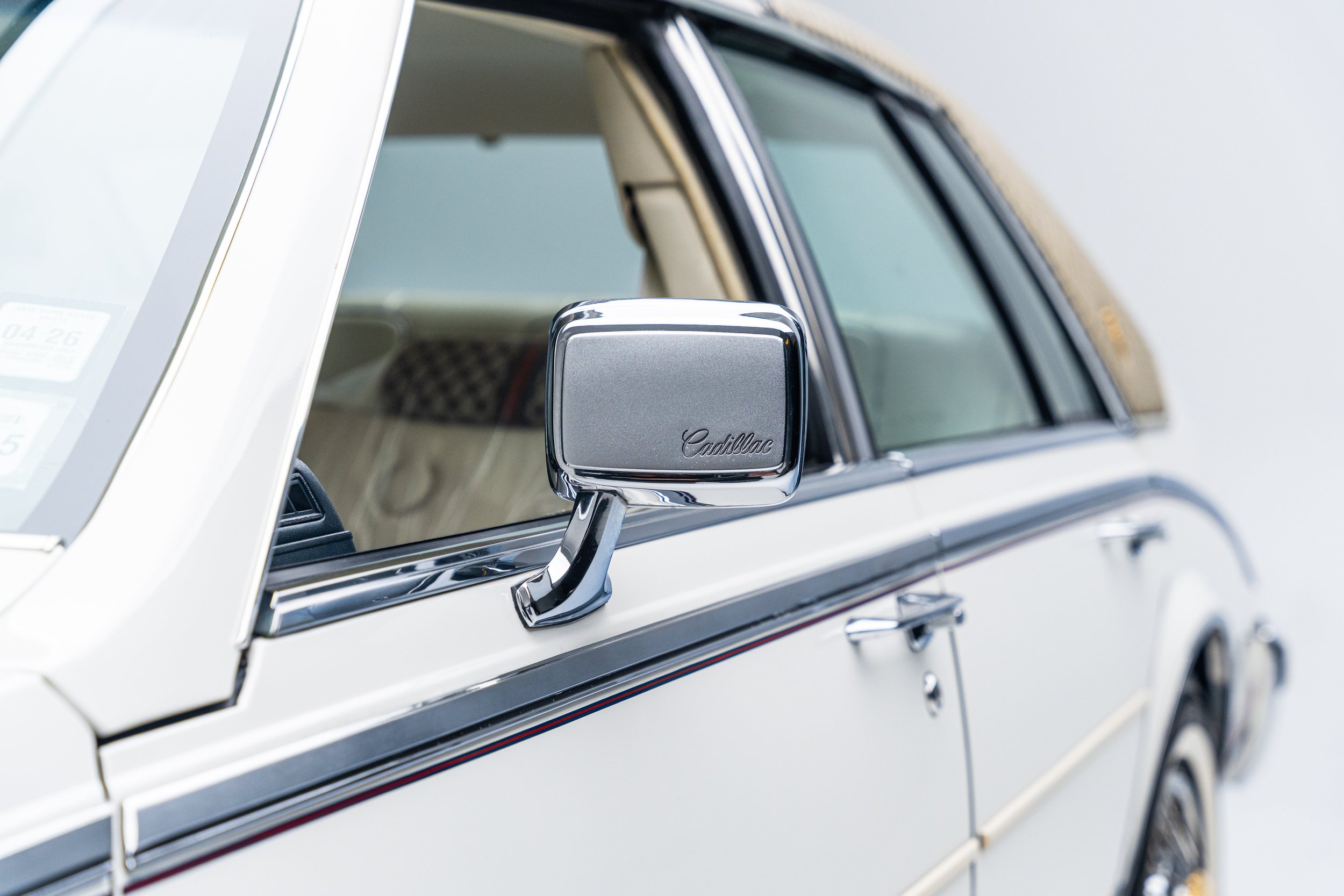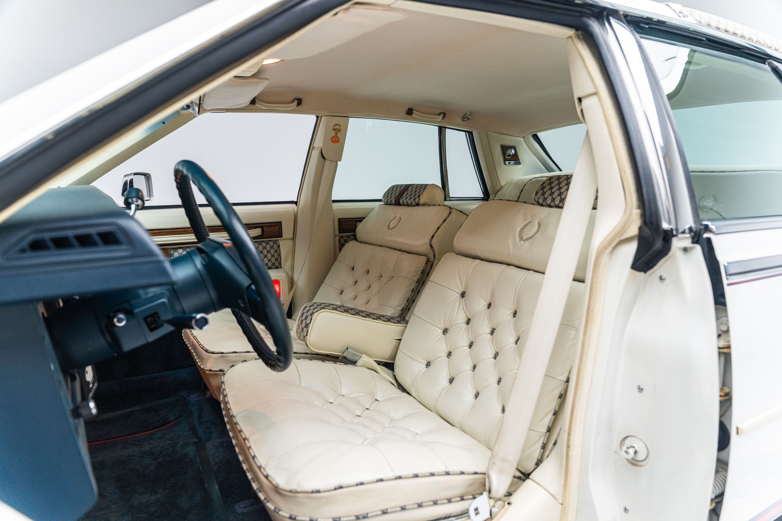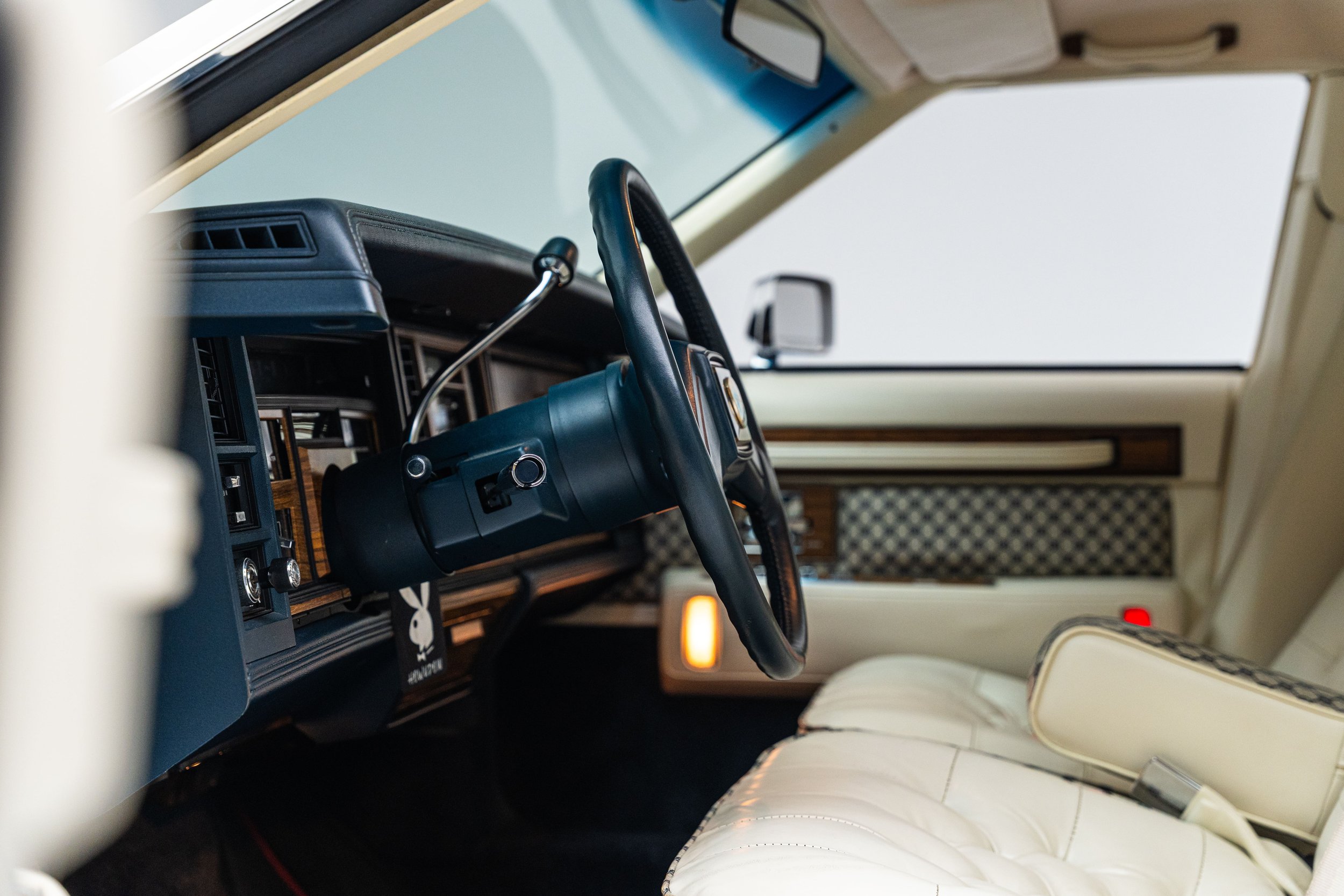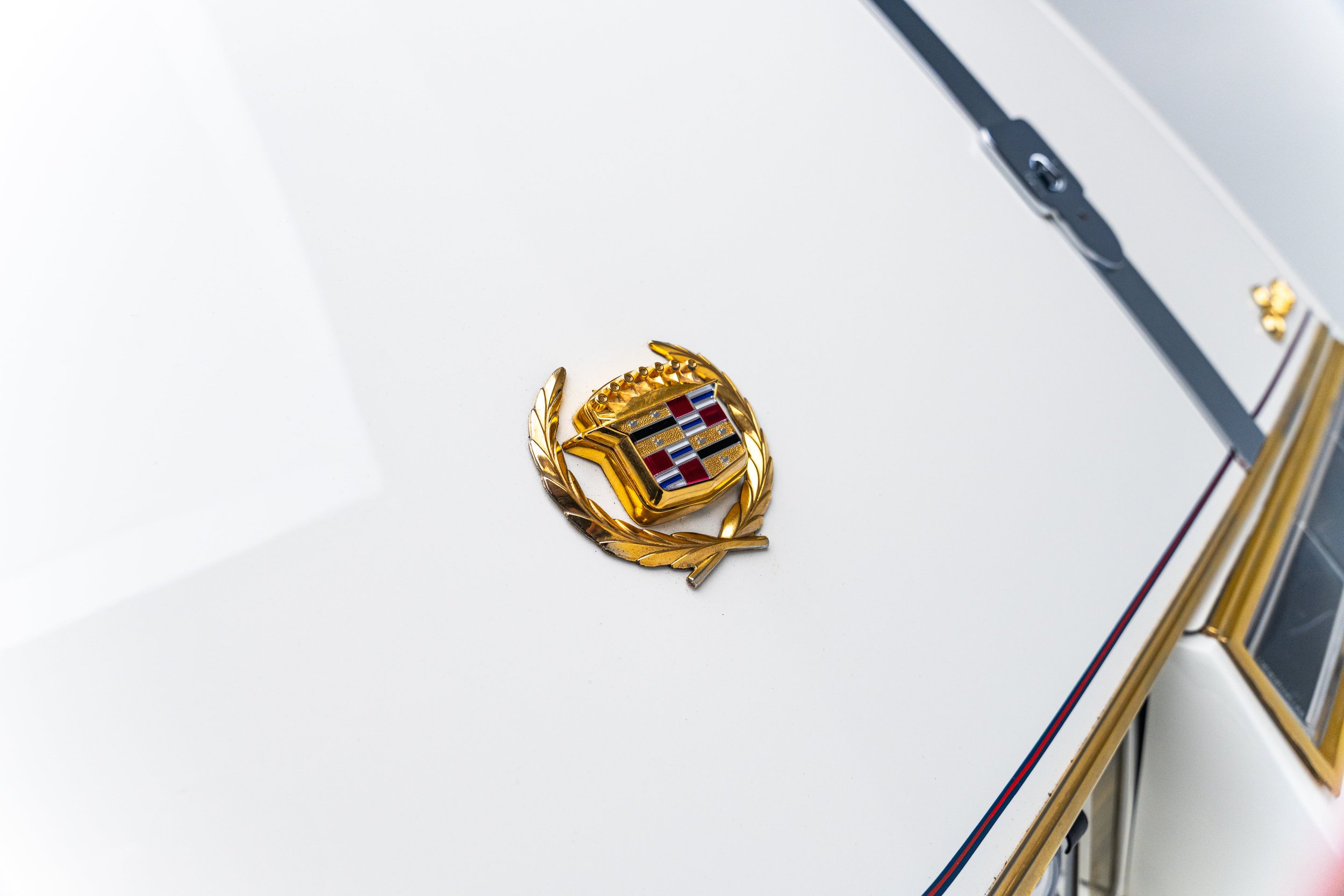 Manufactured at the peak of the "Malaise Era," the second-generation Cadillac Seville, introduced in 1980, was a mix of novel technology and classical design. While its modestly styled predecessor was meant to appeal to a younger clientele, the distinctive new Seville targeted an older market nostalgic for the luxury cars of their youth. Its prominent “bustle-back” rear end was inspired by prewar Rolls-Royces. After experiencing reliability issues and mixed reviews for the outdated look, the Seville was redesigned for 1986. Continuing a 1970s trend of fashion designer–automaker collaborations, in 1978 General Motors, Gucci, and Miami dealer Braman Cadillac partnered to create a special limited edition of the Seville with modifications designed by Aldo Gucci. These included a Gucci-patterned vinyl roof, monogrammed upholstery, custom wheels, and red and blue striping. A second-generation Seville by Gucci was even more exclusive and flamboyant than the first. It is unknown how many were built, but the car on display is believed to be one of fewer than ten survivors.
