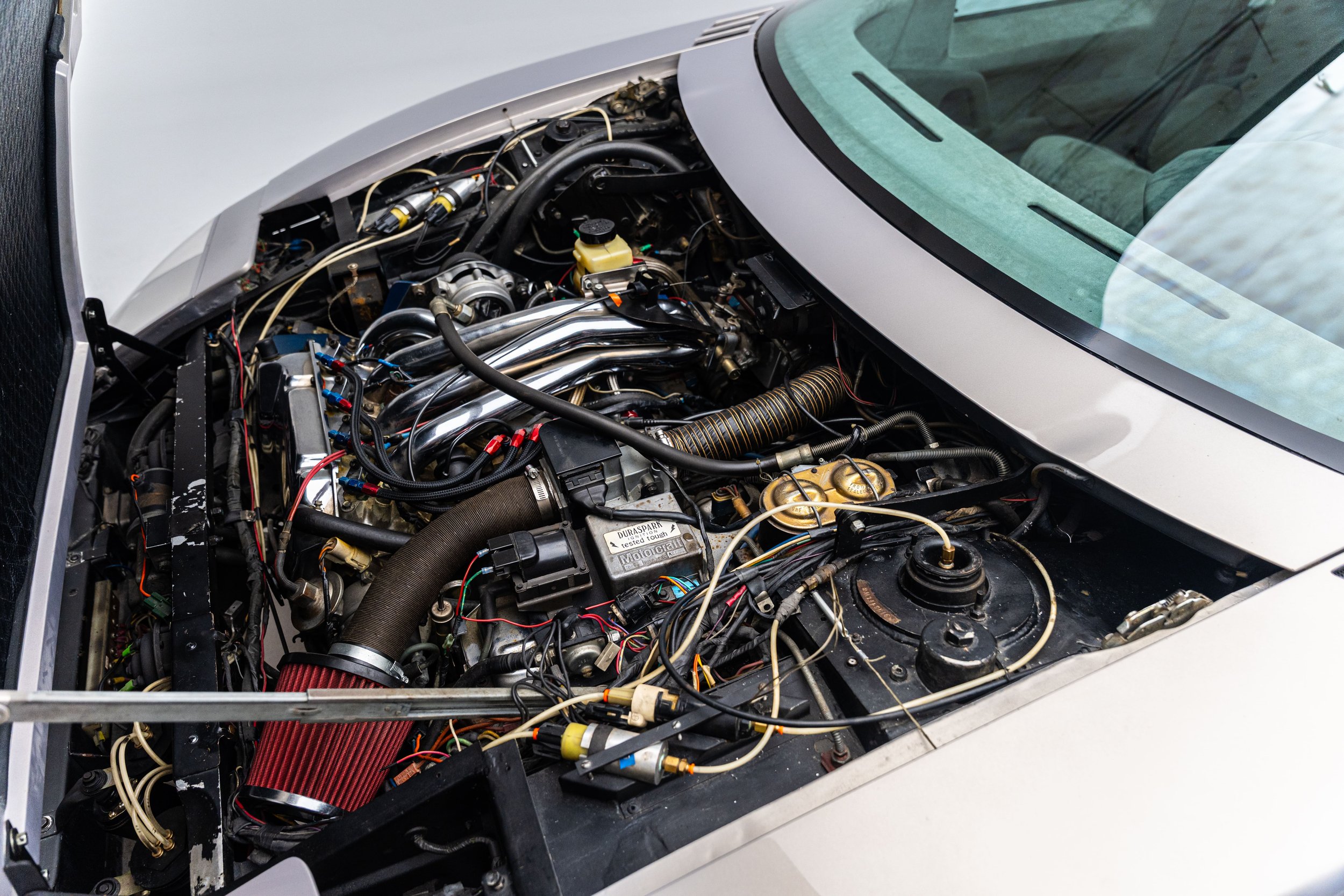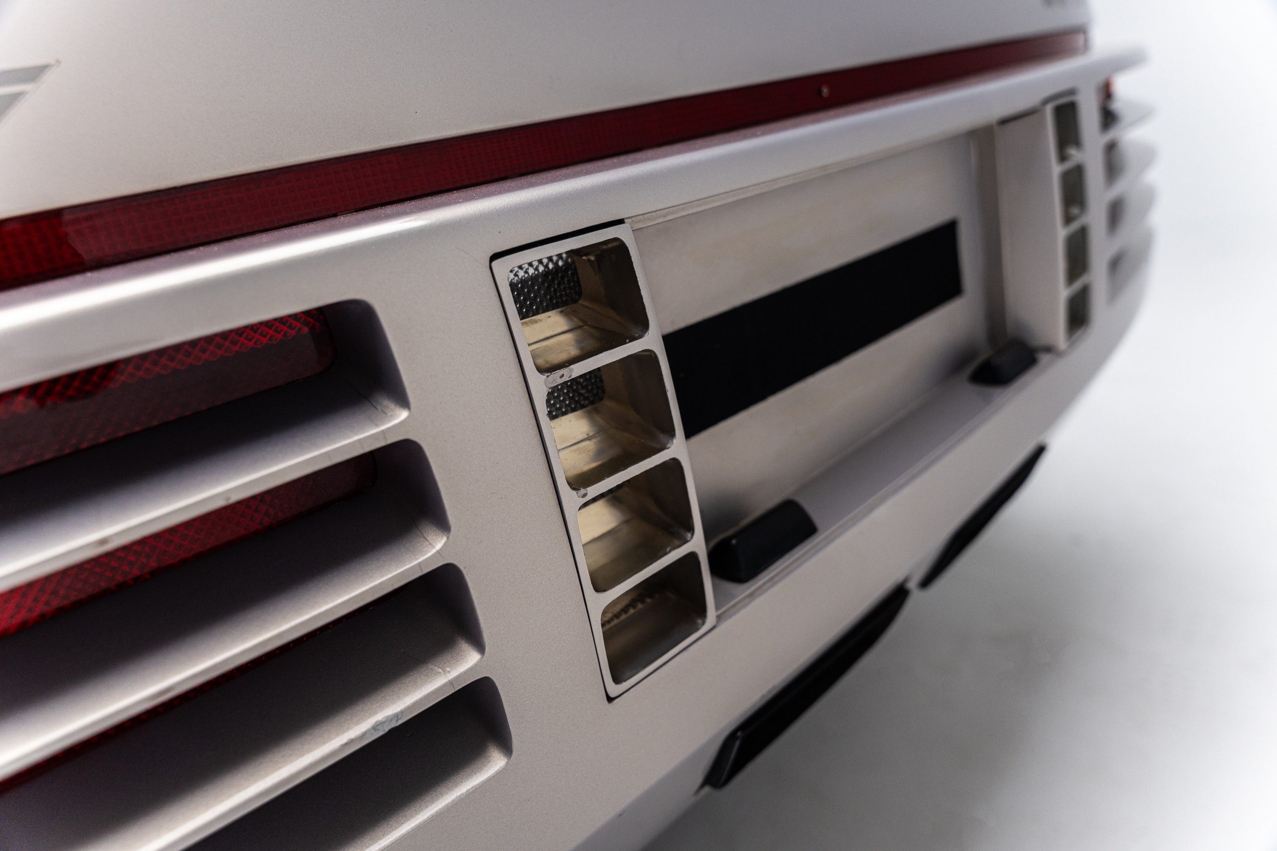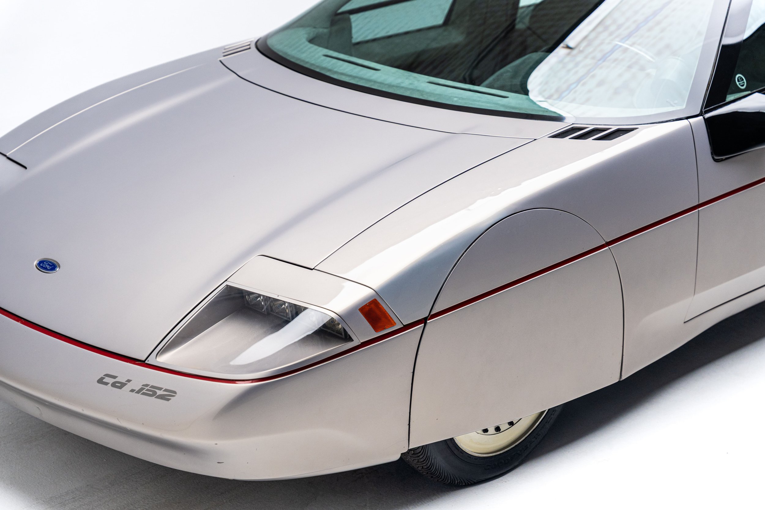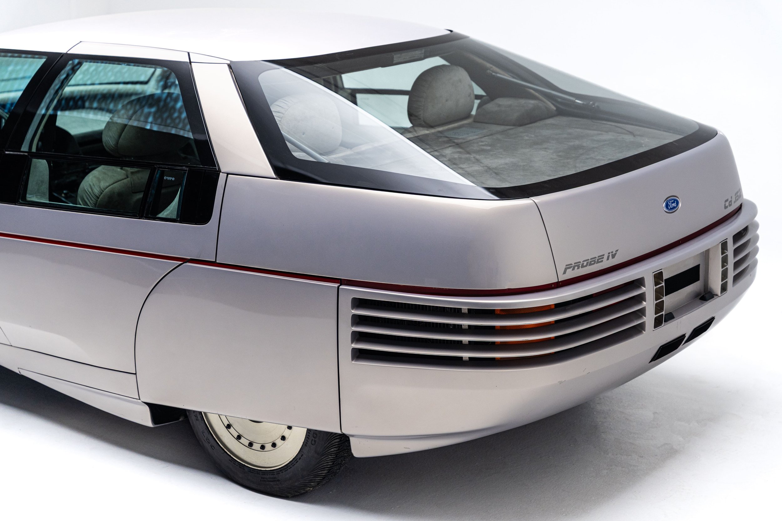 The Ford Probe IV embodied some of the most extreme aerodynamic advancements of the 1980s. Designed for maximum fuel efficiency, it was the fourth in a collection of “Probe” concepts commissioned in the early 1970s to explore passenger car designs that could comply with the Corporate Average Fuel Economy standards enacted by President Gerald Ford’s administration. The Probe IV achieved its aerodynamic efficiency with features like wheel shrouds, covered headlights, concealed windshield wipers, and a streamlined nose with no cooling apertures. The radiator and air conditioning condenser are housed in the rear of the car, with air intake vents behind the rear wheel well openings. It also has a front air dam that automatically lowers while driving to control air flow under the vehicle. These and other elements combined to give the functional concept an incredibly low drag coefficient of 0.15, which Ford advertised was roughly the same as an F-16 fighter jet.